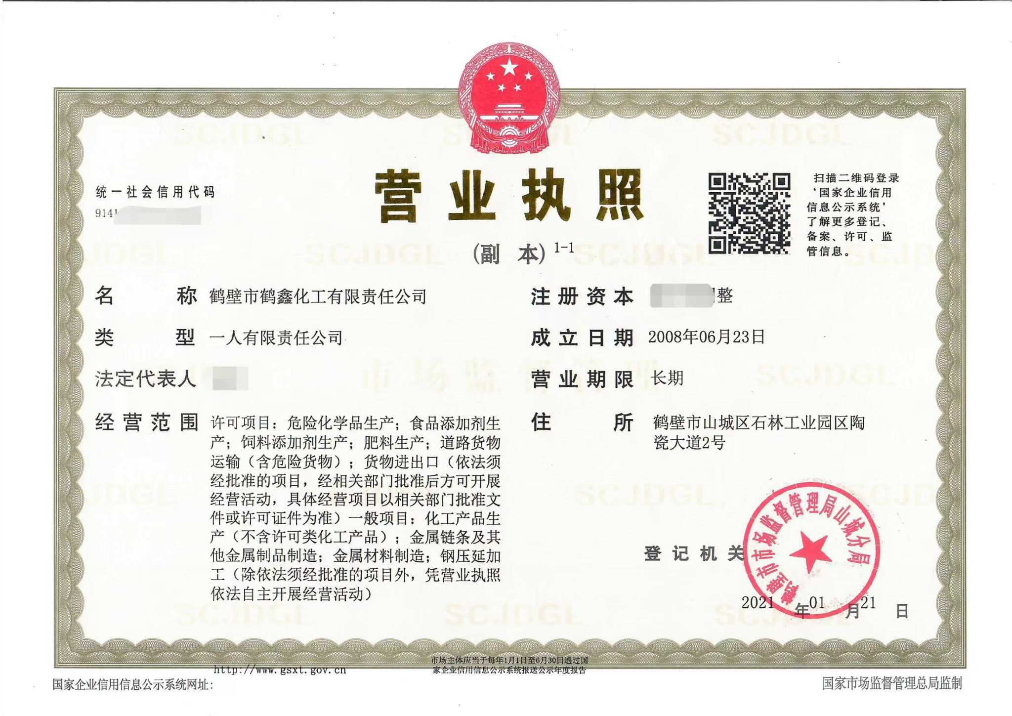 鶴壁市鶴鑫化工有限責(zé)任公司